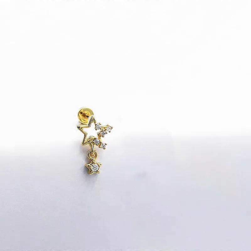 1 PCS Cute Copper Zircon Hollow Star Drop Earring Women Steel Helix Screw Bar Ear Cartilage Piercing Cuff Jewelry