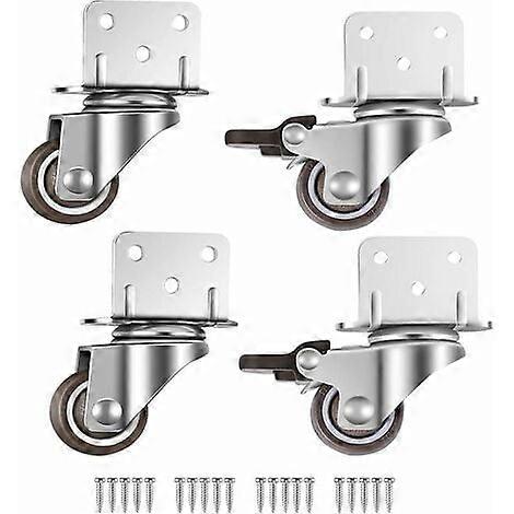 Set of 4 small swivel furniture castors, 25 mm with brake, L-shaped mounting plate, suitable for furniture, flower stands, nurseries (25 mm)