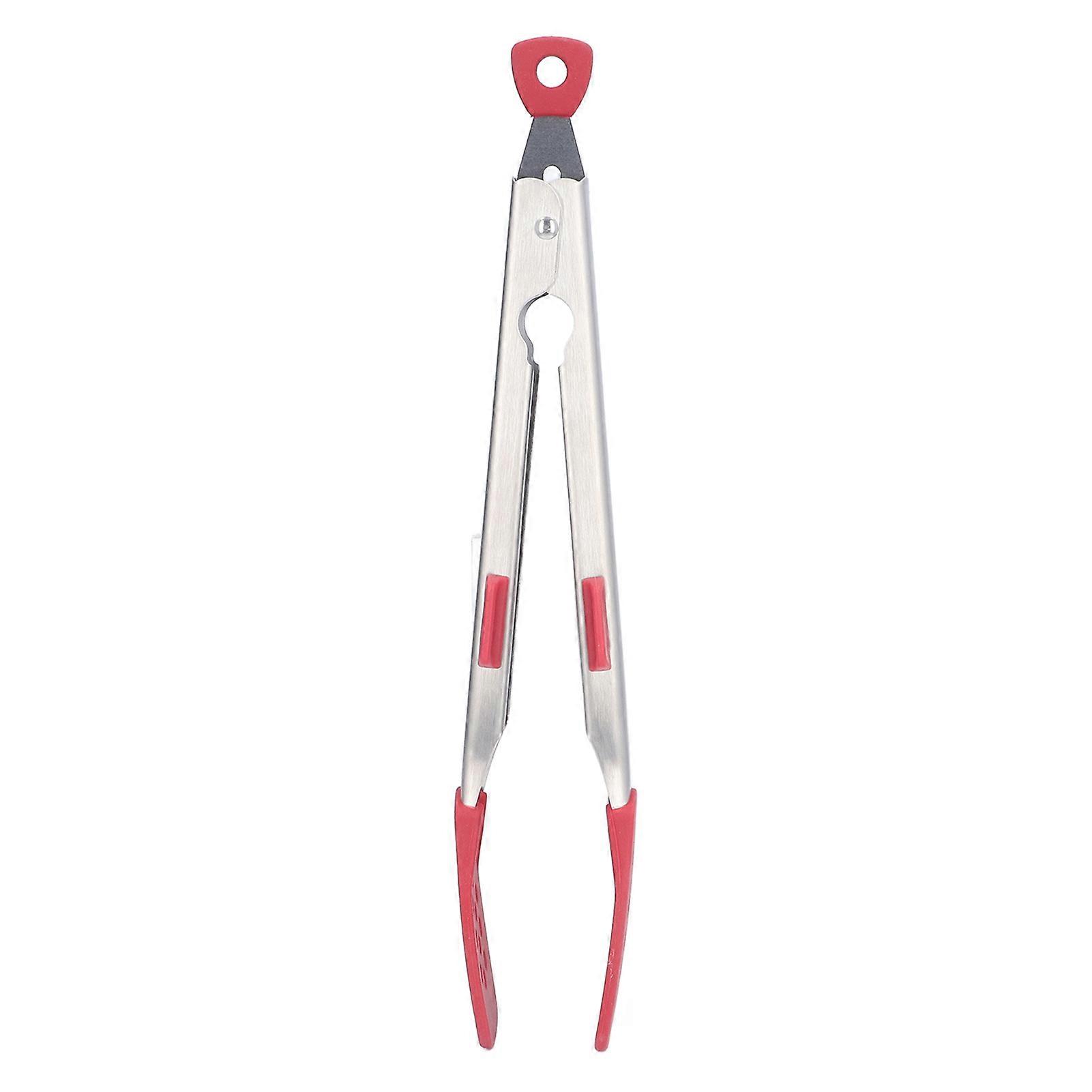 Steak Tongs Thickened 304 Stainless Steel Anti Slip Corrosion Resistant Barbecue Tongs for Restaurant Kitchen Baking Red