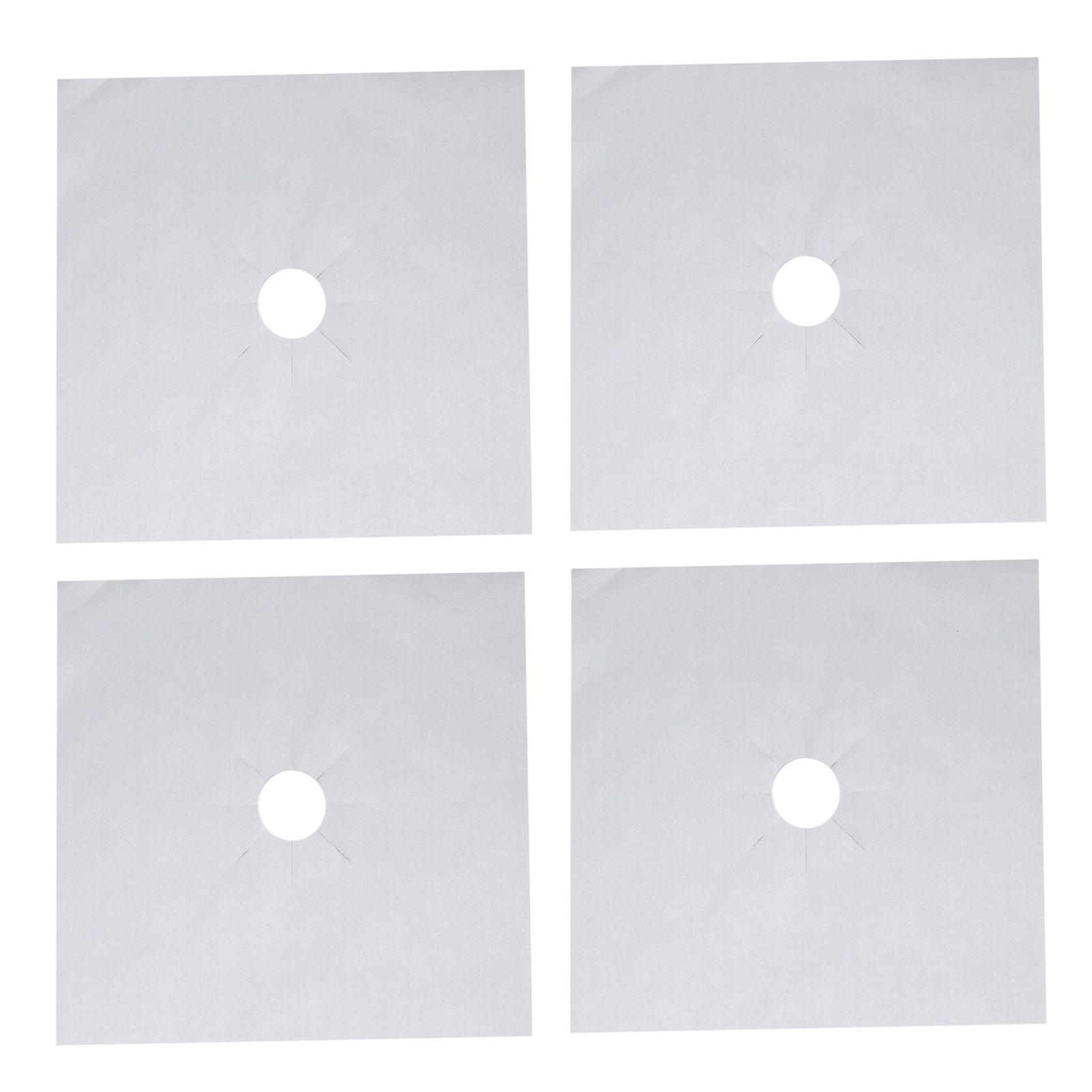 4Pcs Kitchen Accessory PTFE Coating Non Stick Gas Range Stove Top Protector Pad for Kitchen Cooking Silver 27x27cm 0.1mm