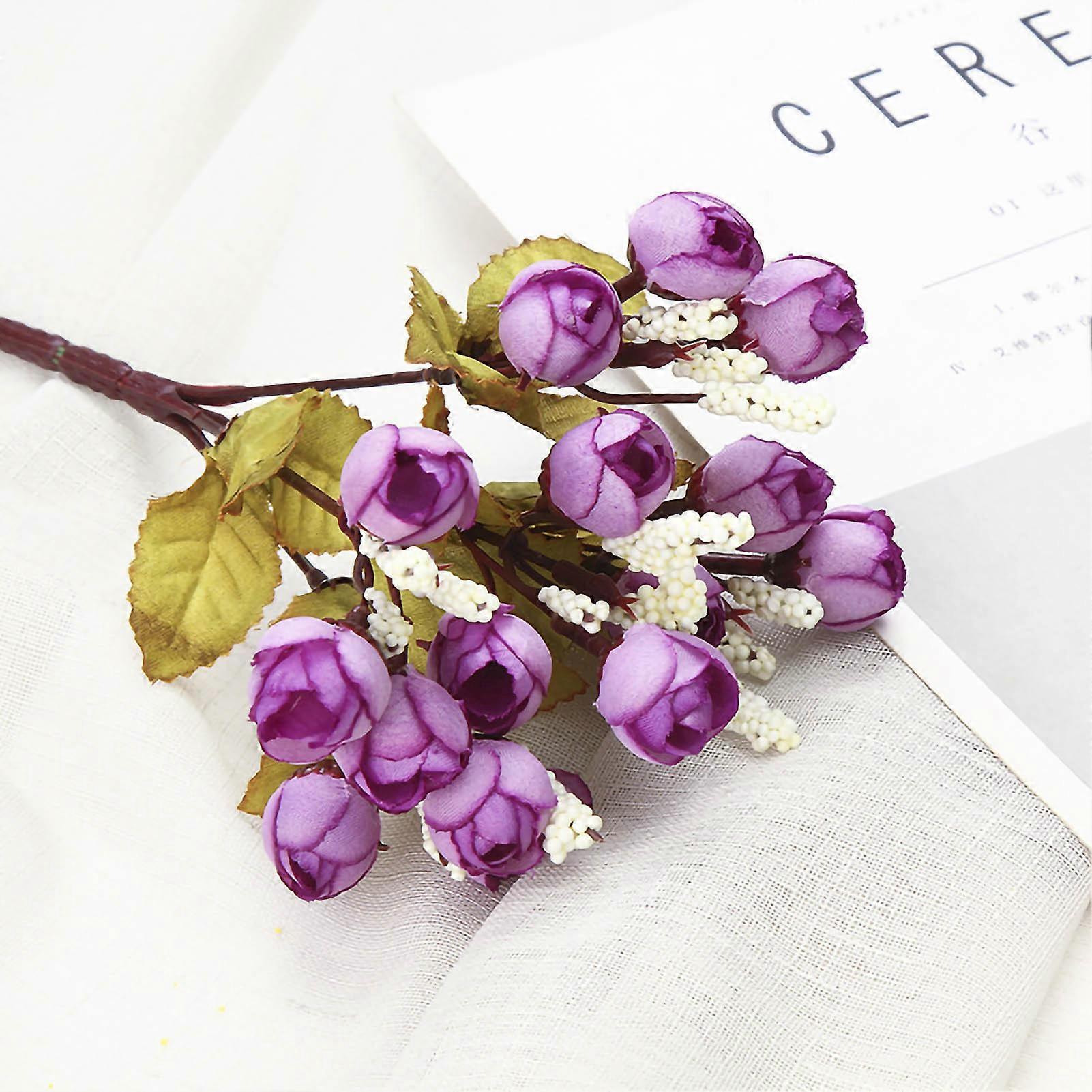 Simulation Mini Rose Flower Mini Rose Tea Bud Simulation Rose Flower Pearl Bud for Living Room Flower Arrangement Decoration Purple