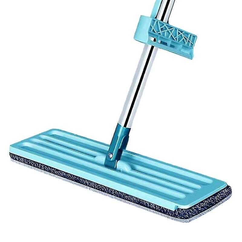 Floor Cleaner Mop Dry Wet Dual Use Microfiber Free Hand Washing Flat Cleaning Tile Mop for Home Use Blue Mop, 2 Piece of Pads