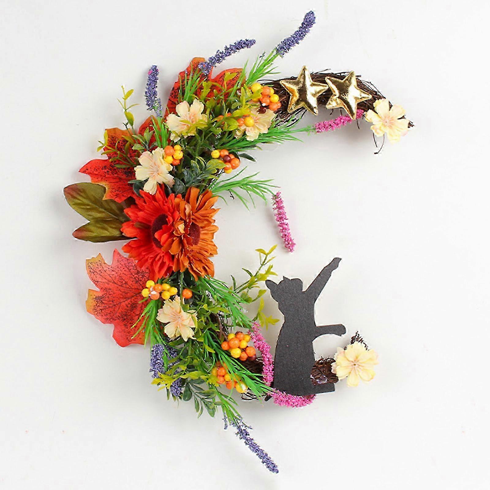 30cm Artificial Wreath High-quality Moon Cat Decor Halloween Thanksgiving Hanging Wall--red