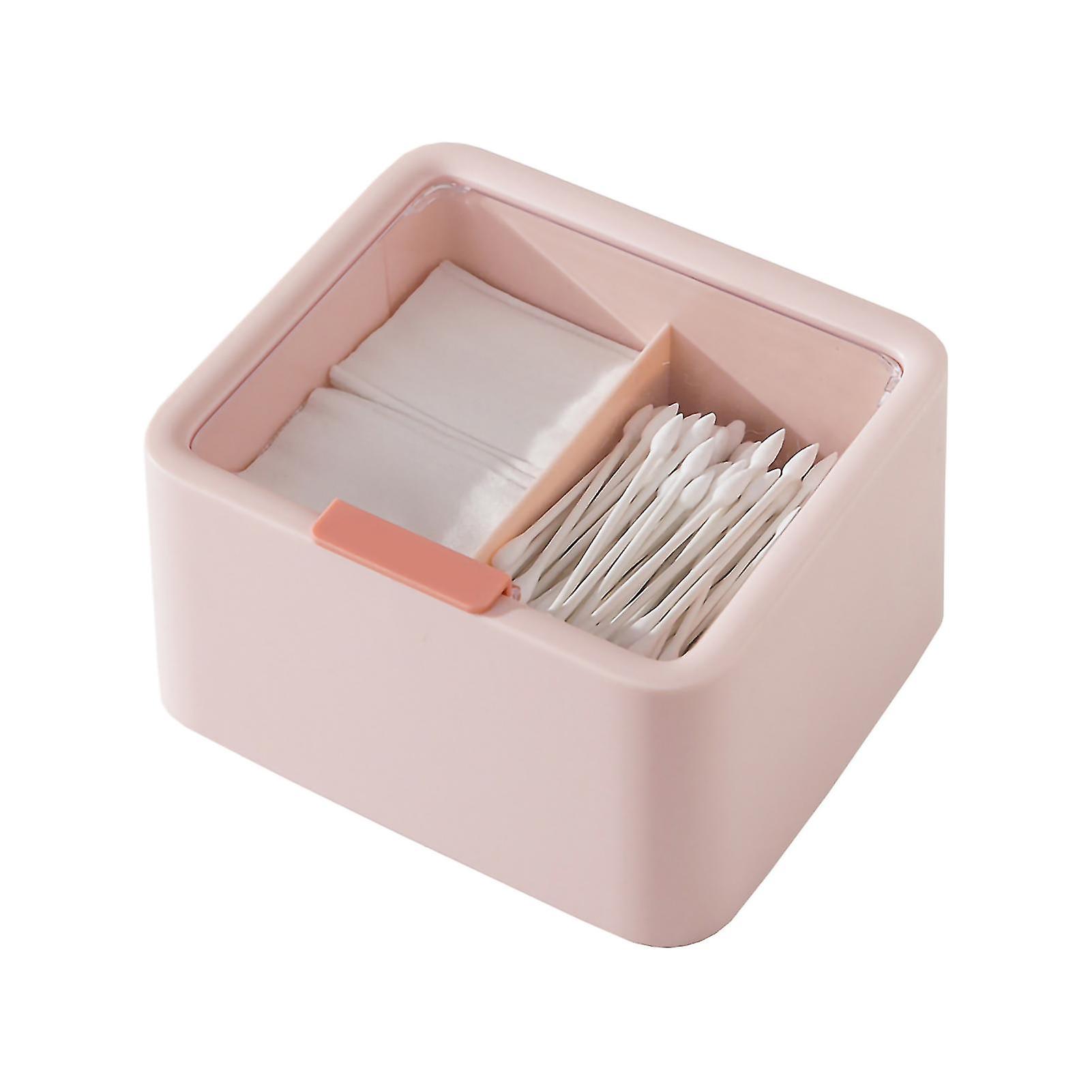 Double Grids Cosmetic Organizer Plastic Dustproof Double Grids Makeup Container with Lid for Makeup Cotton Swab Dental Floss Pink
