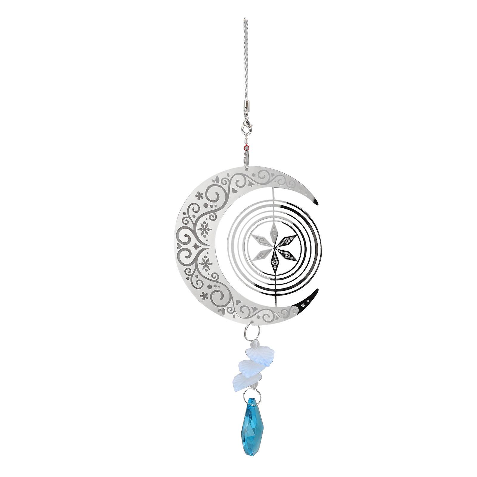 Rotating Wind Chime Stainless Steel Moon Shaped Decorative Metal Wind Chimes for Home Silver