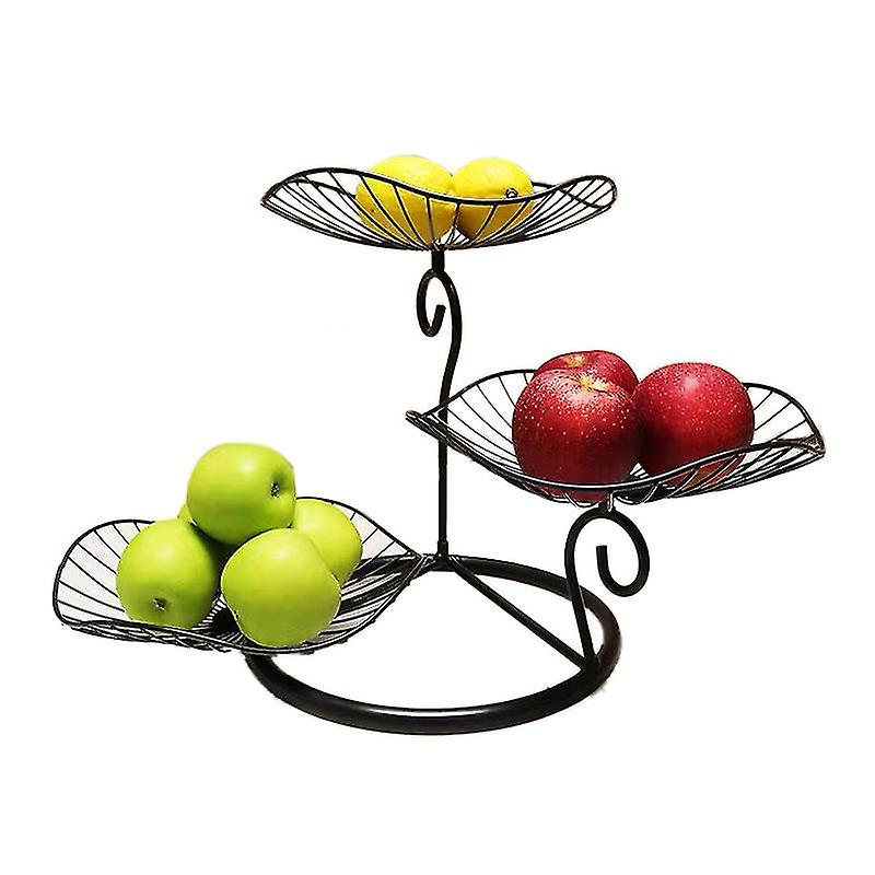 Nordic Style 3 Tier Multilayer Fruit Tray Modern Multi Layer Fruit Snack Storage Basket for Living Room Coffee Table Lotus Leaf Black