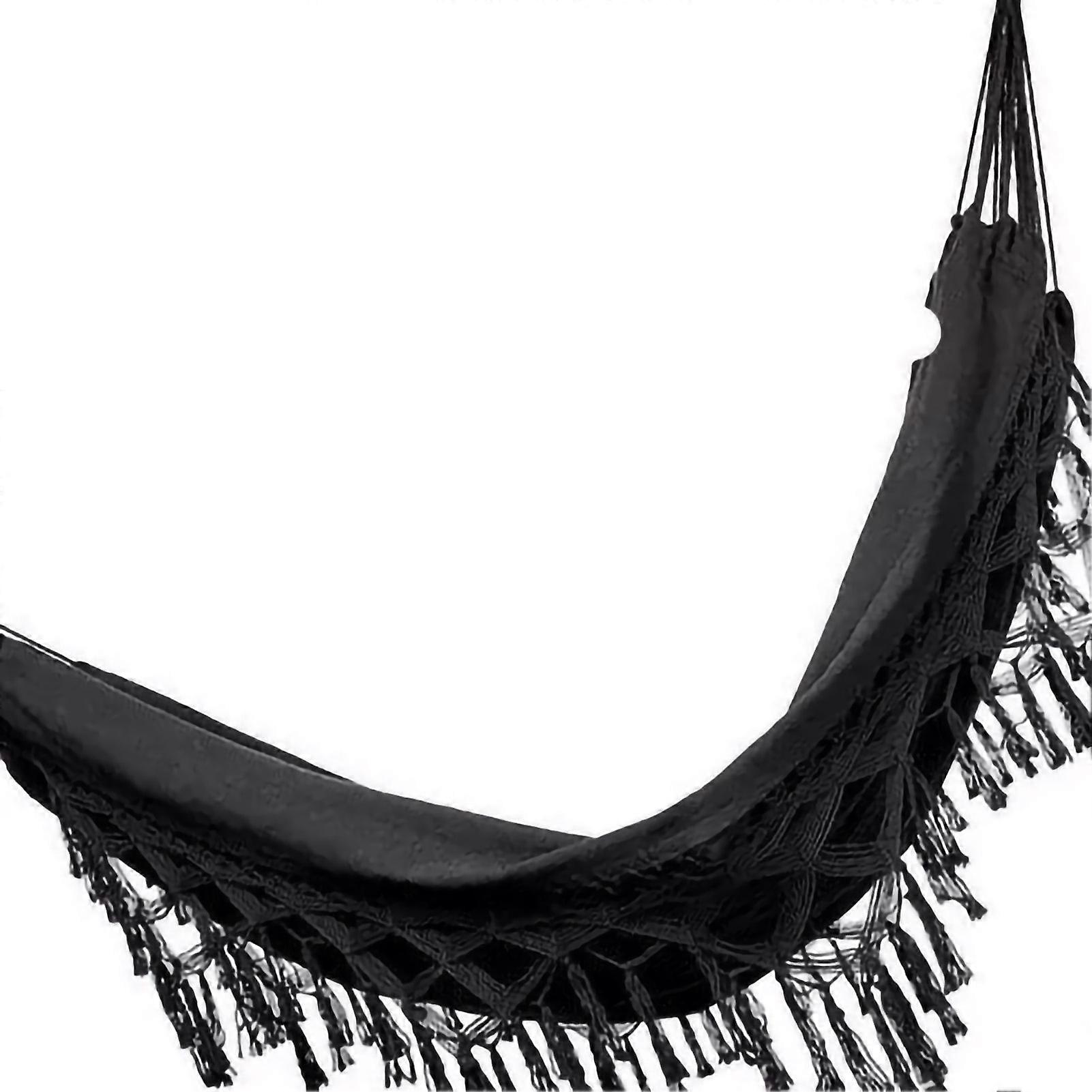Portable Hammock Wearable Portable Rustic Tassel Adult Hammock with 2 Tie Ropes Storage Bag for Camping Indoor Outdoor Black