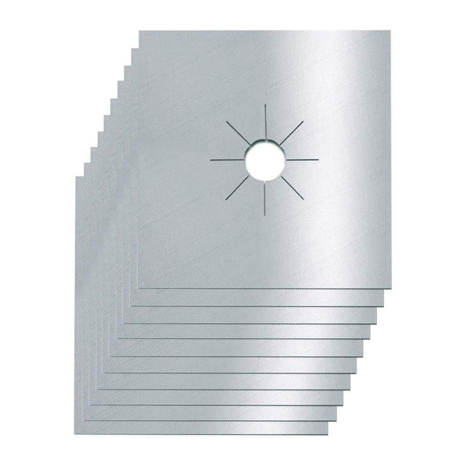 10pcs Gas Range Stove Pad Thickness 0.2mm Waterproof Reusable Heat Resistant Fiberglass Gas Stove Protector Pad Silver
