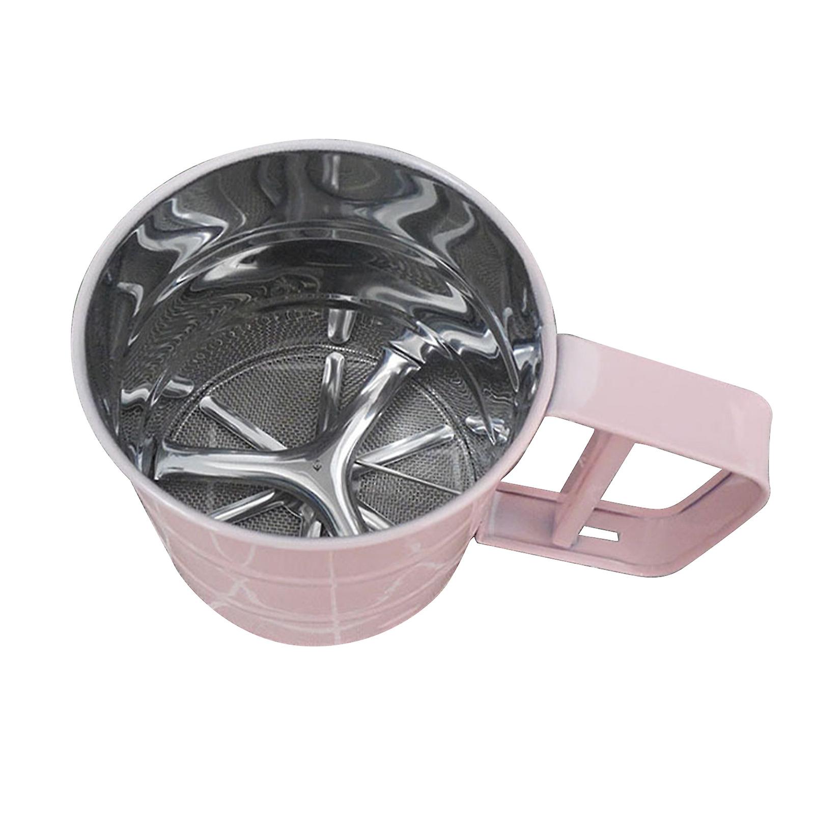 Flour Sieve Stainless Steel Corrosion Resistant Safe Odorless Beautiful Handheld Baking Flour Mesh Sieve Pink