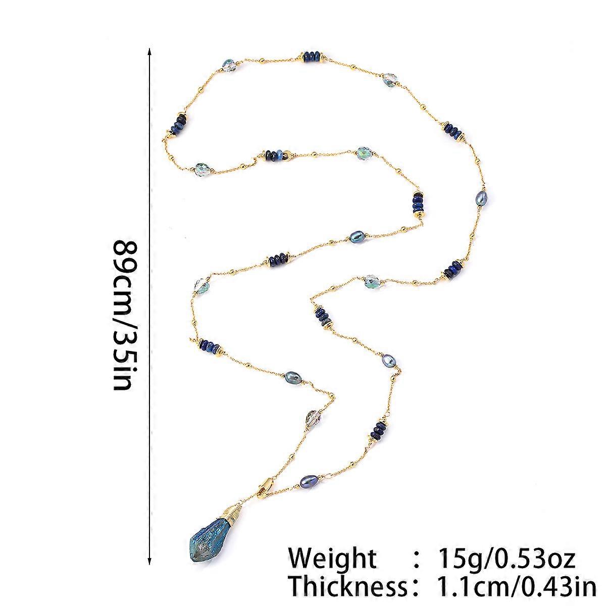 Long Pearl Sweater Chain Light Luxury High-end Sense Stacked Special-shaped Blue Crystal Stone Necklace For Women-Blue