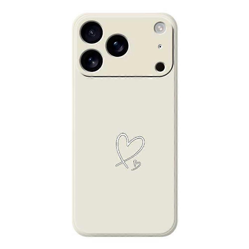 For iPhone 17 Pro Max Case White Love Pattern Printing Straight Edge TPU Phone Back Cover - Beige