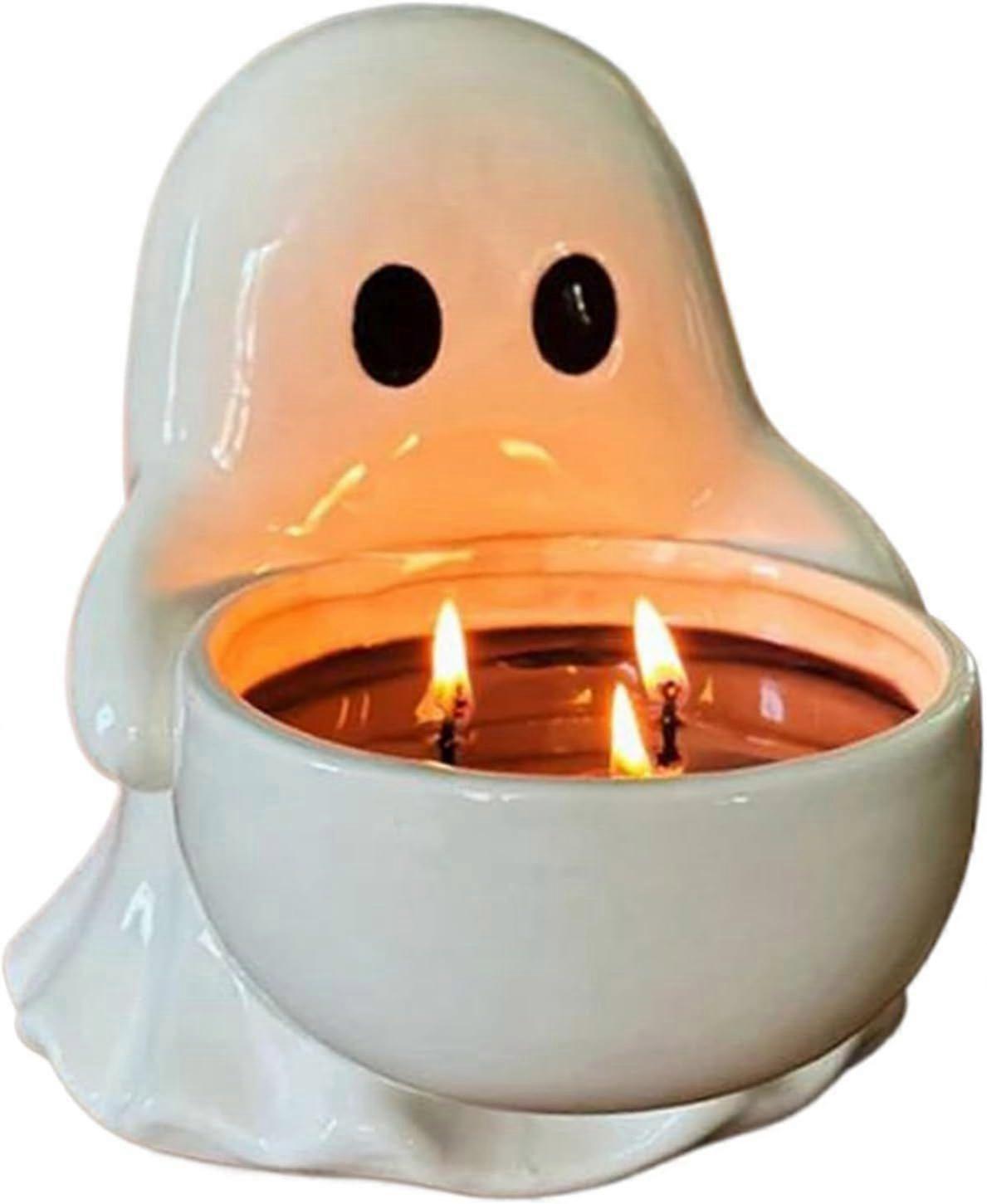 Ghost Candle Holder, Cute Ghost Shape Ceramic Candle Stand, Lightweight Build Halloween Decorative Candlestick Rack for Parties Tabletop, Halloween Ca