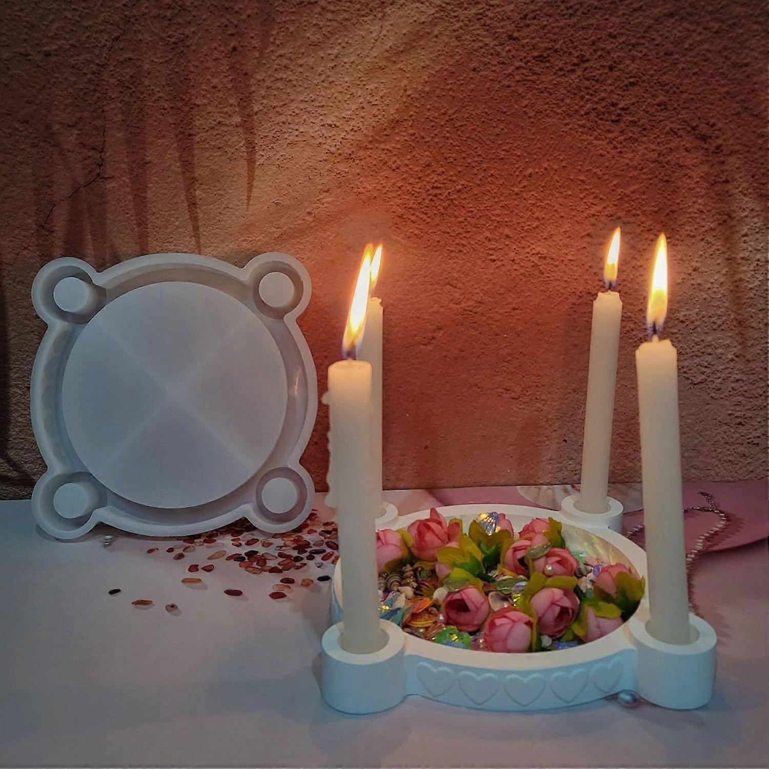 Silicone Mould Candle Holder, 4 Holes Round Casting Moulds for Taper Candles Concrete DIY Candle Holder Silicone Moulds