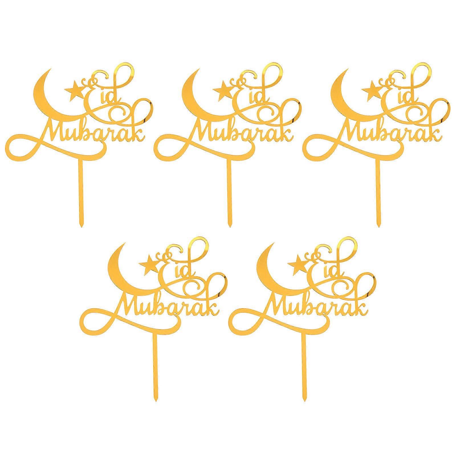 Muslim Festival Cupcake Toppers Acrylic for Decoration 5Pcs Golden Decorations