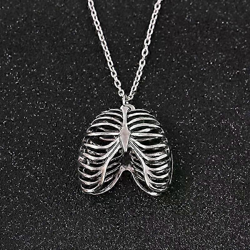 Fashion Gothic Rib Cage Necklace Anatomical Skeleton Heart Goth Punk Unique Retro pendant necklace Jewelry Suitable for men/women