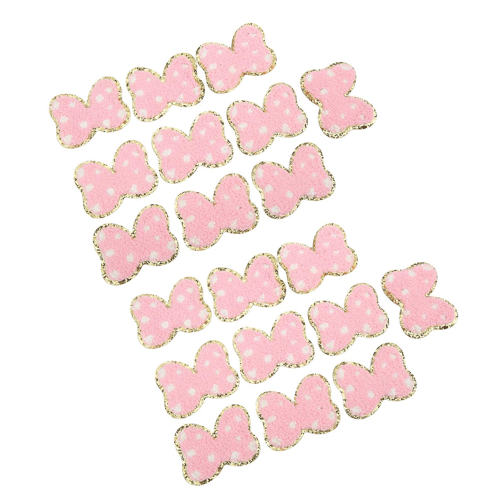 20 Pcs Pink DIY Bow Iron On Patches 5x6.5cm Embroidery Set