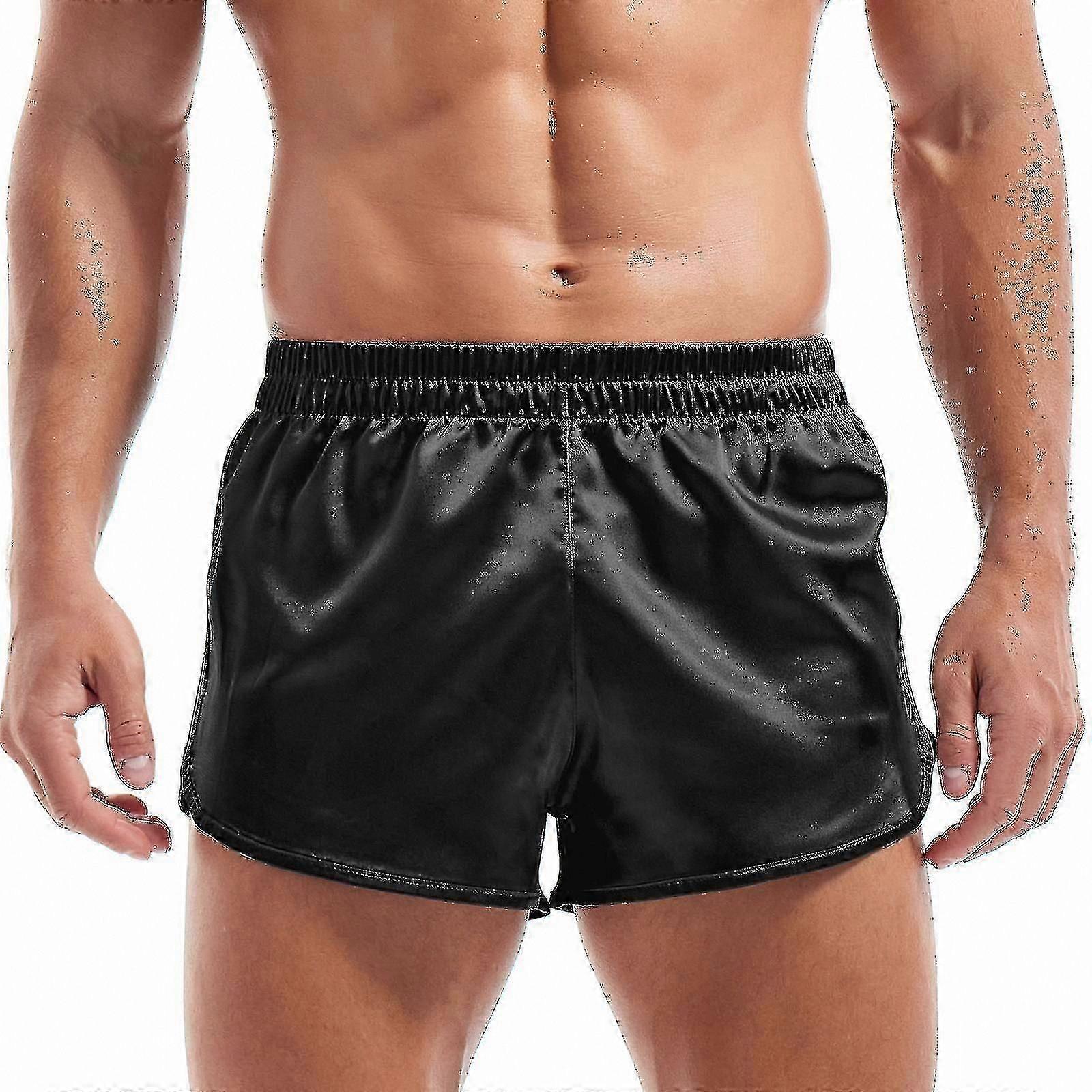 Satin Boxer Briefs for Men, Sexy Silk Pajama Shorts, Loose Lounge Sleepwear, Split Leg Home Bottoms