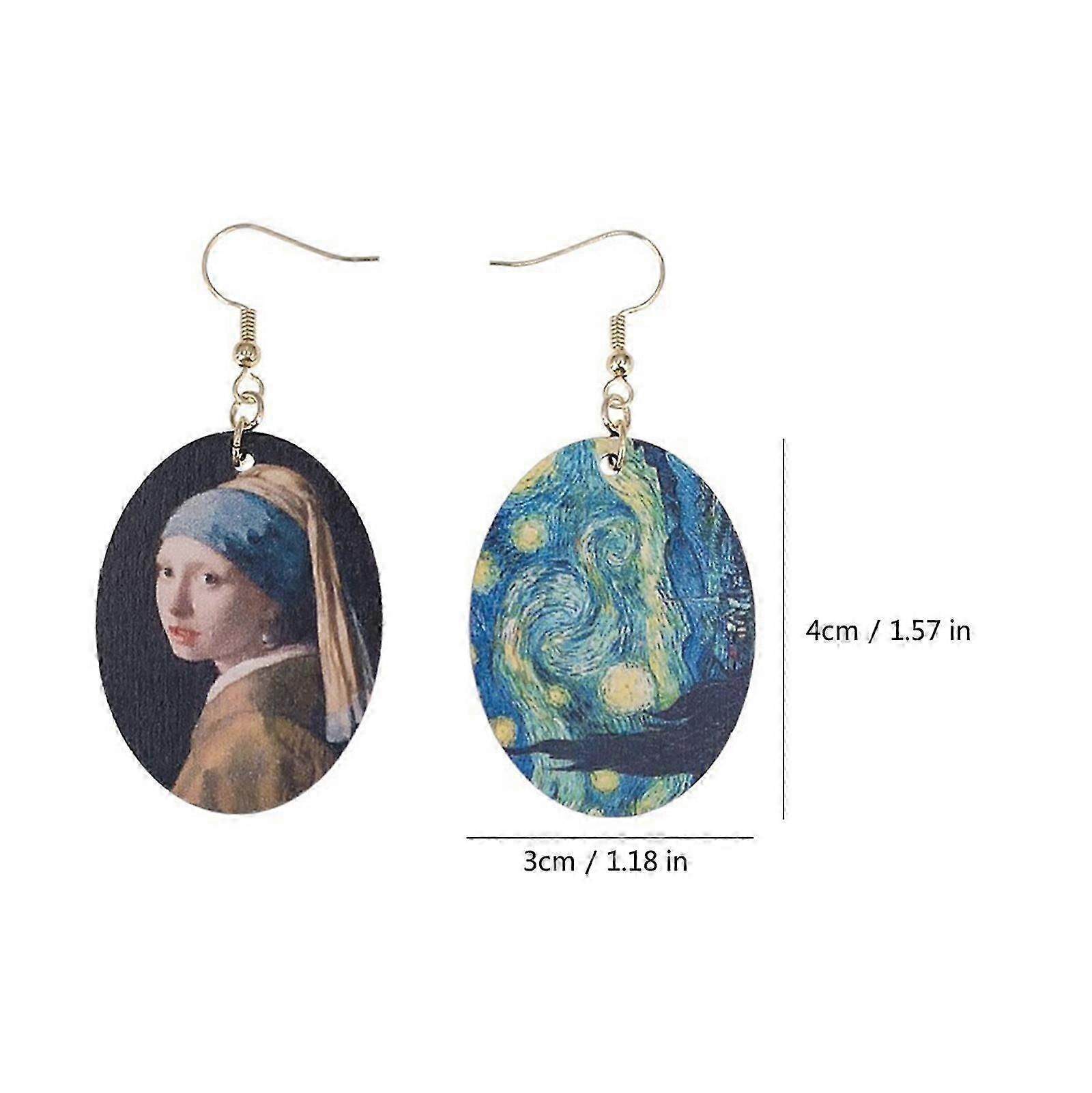 Trendy Johannes Vermeer Oil Painting Art Girls Drop Hook Earrings Natural Wood Dangle Earrings Jewelry Decor for Women.