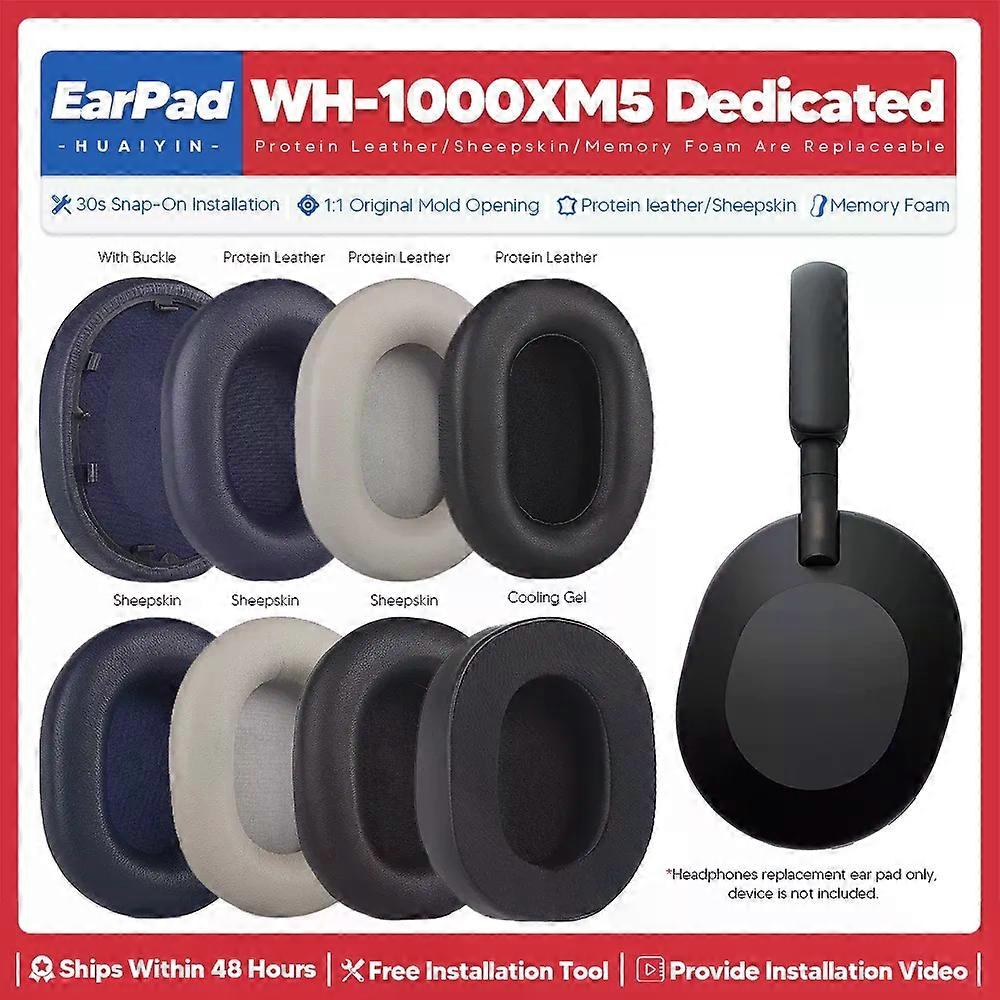 Replacement Ear Pads compatible for Sony WH 1000XM5 Headphone Accessories Earpads Headset Ear Cushion Repair Parts Protein Leather