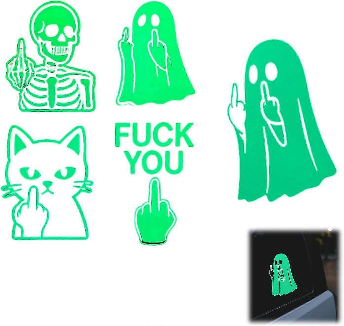 Glowing Ghost Middle Finger Sticker, Halloween Stickers Glow in The Dark, Ghost Car Decal, Waterproof Ghosts Decor for Car, Halloween Ghost Stickers,