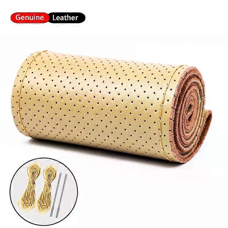 Braiding Genuine Leather Breathable 38cm Steering Wheel Cover Automobile Covers Steering Wheel Suitable for Car Interior Accessories