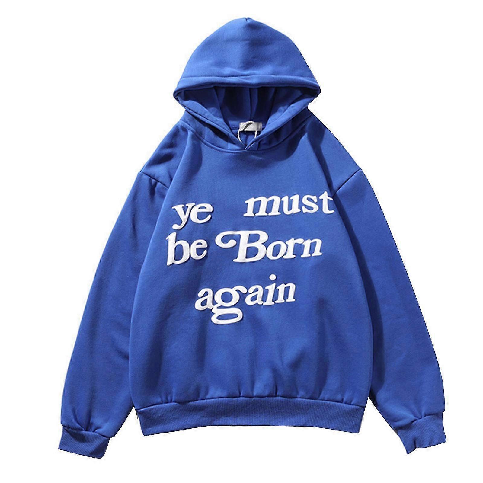 Womens Men Oversized Hoodies Sweatshirt Funny Sayings Hip-Hop Ye Must Be Born Letters Graphic Long Sleeve Pullover Top orange
