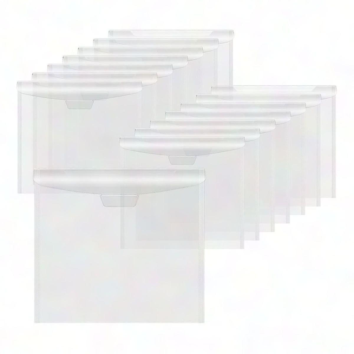 12-Pack 12x12 Scrapbook Paper Storage Bags with Buckle Closure, Clear Organizer for Scrapbooking Supplies