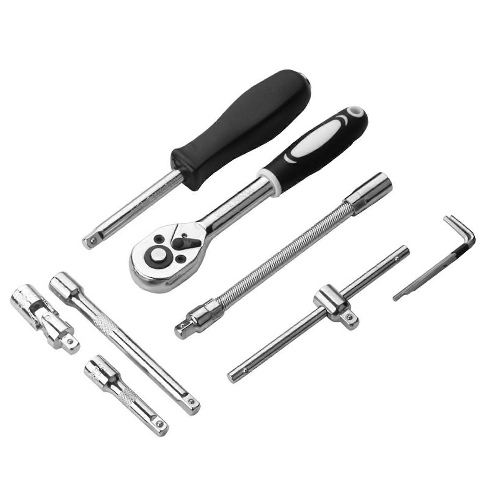 46pcs Ratchet Wrench & Socket Tools Set 1/4-inch Drive Screwdriver Repairing Kit Combination Socket Wrench Drive Socket Set with Storage Case for Home Car Automobile Bike Mechanic Projects Repair Household Garage Trunk Type: 46pcs, Black Toolbox / 46pcs, Green Toolbox / 53pcs, Orange+Black Toolbox (Optional) 【46PCS RATCHET WRENCH TOOL KIT】 There are 46pcs ratchet wrench socket tools set for small screw nut repairing. Features: The screwdriver handle can meet batch head, a word, cross, T word, plum blossom socket, head hex, extension rod, universal joint can receive bending bar. The socket using high-quality chrome vanadium steel 50 bv30 cold-press forming, 50% higher than that of carbon steel, use inferior smooth surface processing, good rust prevention effect. Batch head adopts cr-v materials, stronger hardness, toughness is higher. Rapid fall off ratchet wrench (positive and negative adjustable), the push button quick release feature ensures that the socket is locked securely while in use, but also allows for easy removal or of socket even with greasy or oily finger. High-quality 45 teeth ratchet can improve the speed. Is open throttle, in air conditioning, seat nut, tire fenders, car door locks, home (basic contains) usually used in the suit small screw nut the perfect of a set of tools. Specifications: Material: S2 alloy steel + CRV Package Weight: 1300g / 45.86oz Package Size: 230 * 120 * 40mm / 9.06 * 4.72 * 1.57in Packing List: 6 * Flowers Hex: T10 / T15 / T20 / T25 / T30 / T40 6 * Inner Flat Head Hex: H3 / H4 / H5 / H6 / H7 / H8 3 * A Words: SL4 / SL5.5 / SL7 3 * Crosses: PH1 / PH2 / PH3 3 * M Words: PZ1 / PZ2 / PZ3 13 * 1/4" DR Sockets: 4-4.5-5-5.5-6-7-8-9-10-11-12-13-14MM 3 * Hex Key Wrenches: 1.5/2.0/2.5MM 1 * 1/4" DR Universal Joint 1 * 1/4" X2" Extension Bar 1 * 1/4" X4" Extension Bar 1 * 1/4" X6" Flexible Extension 1 * 1/4" DR Sliding T Bar 1 * 1/4" Quick Ratchet Handle 1 * 6" Spinner Handle 1 * Bit Adaptor 1 * Storage Box -------------------------------------------- 【53PCS RATCHET WRENCH TOOL KIT】 Features: Luxury Package: Drive Socket Bits, Metric Socket, Extended Socket, Wrenches, Extension Bar, Sliding Bar, Soft Extension Bar, Ratchet Wrench, Spinner Handle, AD Bit Adapter, Universal Bar.   : All tools are made of carbon steel forged at high temperature, with high strength, high hardness, durability and corrosion resistance. Wide Applications: This tool set can be used for home car, automobile repair, mechanic projects, garage, car trunk, etc. It is a perfect helper for you to repair or work. Compact Storage Case: These tools are neatly stored in a sturdy and compact case to keep them secure, clean, organized and easy e when needed. 53 Pieces: This general repair tool set includes 53-piece tools, which can satiate daily needs such as automobile repair. Specifications: Material: Carbon Steel Package Weight: 1800g / 63.49oz Package Size: 27.5 * 20.5 * 6cm / 10.8 * 8 * 2.4in Packing List: 21 * Drive Socket Bits 13 * 1/4 Metric Socket (4 / 4.5 / 5 / 5.5 / 6 / 7 / 8 / 9 /10 / 11 / 12 / 13 / 14)mm 7 * Extended Socket (6 / 7 / 8 / 10 / 12 / 13 / 14)mm 3 * Wrenches (1.5mm / 2mm / 2.5mm ) 2 * 1/4 Extension Bar (50mm / 100mm) 1 * 1/4 Sliding Bar (110mm) 1 * 1/4 Soft Extension Bar (140mm) 1 * 1/4 Ratchet Wrench (140mm) 1 * 1/4 Spinner Handle (140mm) 1 * 1/4 AD Bit Adapter 1 * 1/4 Universal Bar 1 * Storage Box