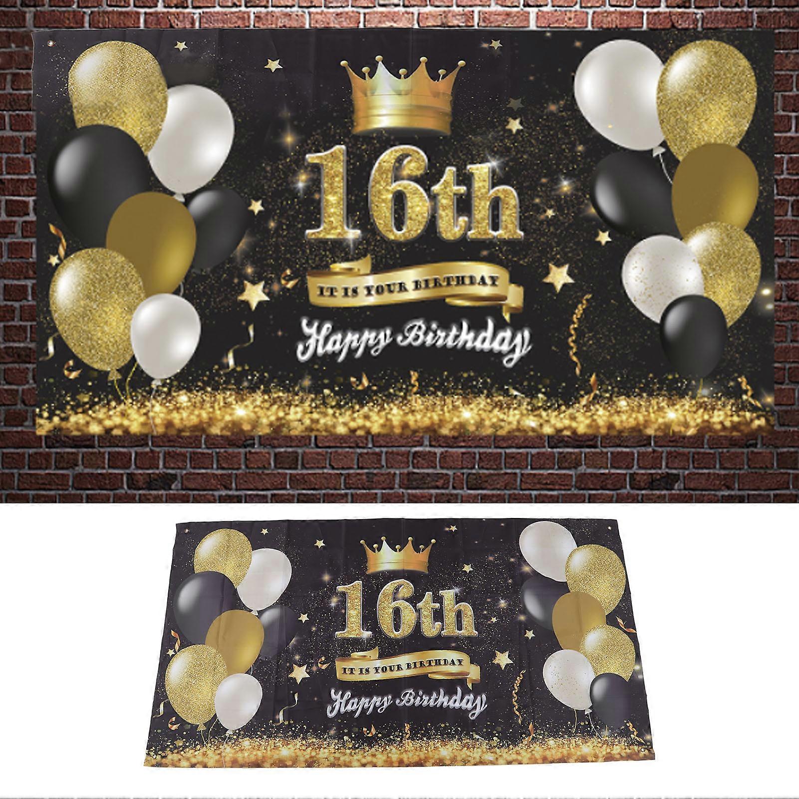 Happy Birthday Backdrop 16th Banner Black Gold 70.9x39in