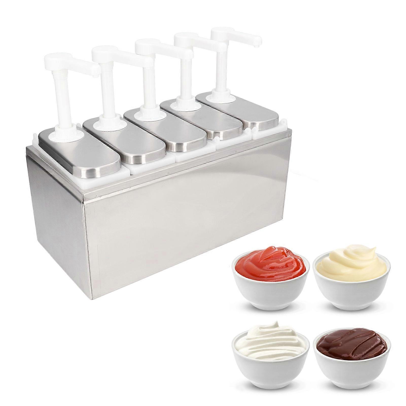 5-Pack 1L Sauce Dispenser Pumps with Base, Plastic & Stainless Steel