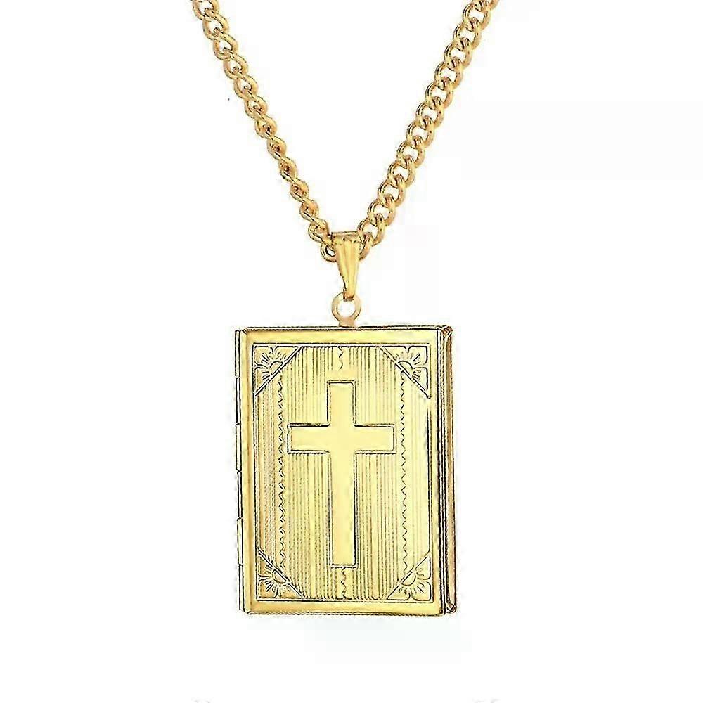 New Fashion Jesus Cross Locket Pendants Gold Color Stainless Steel Cross Necklace Fit For Women Men Religious Jewelry Gift