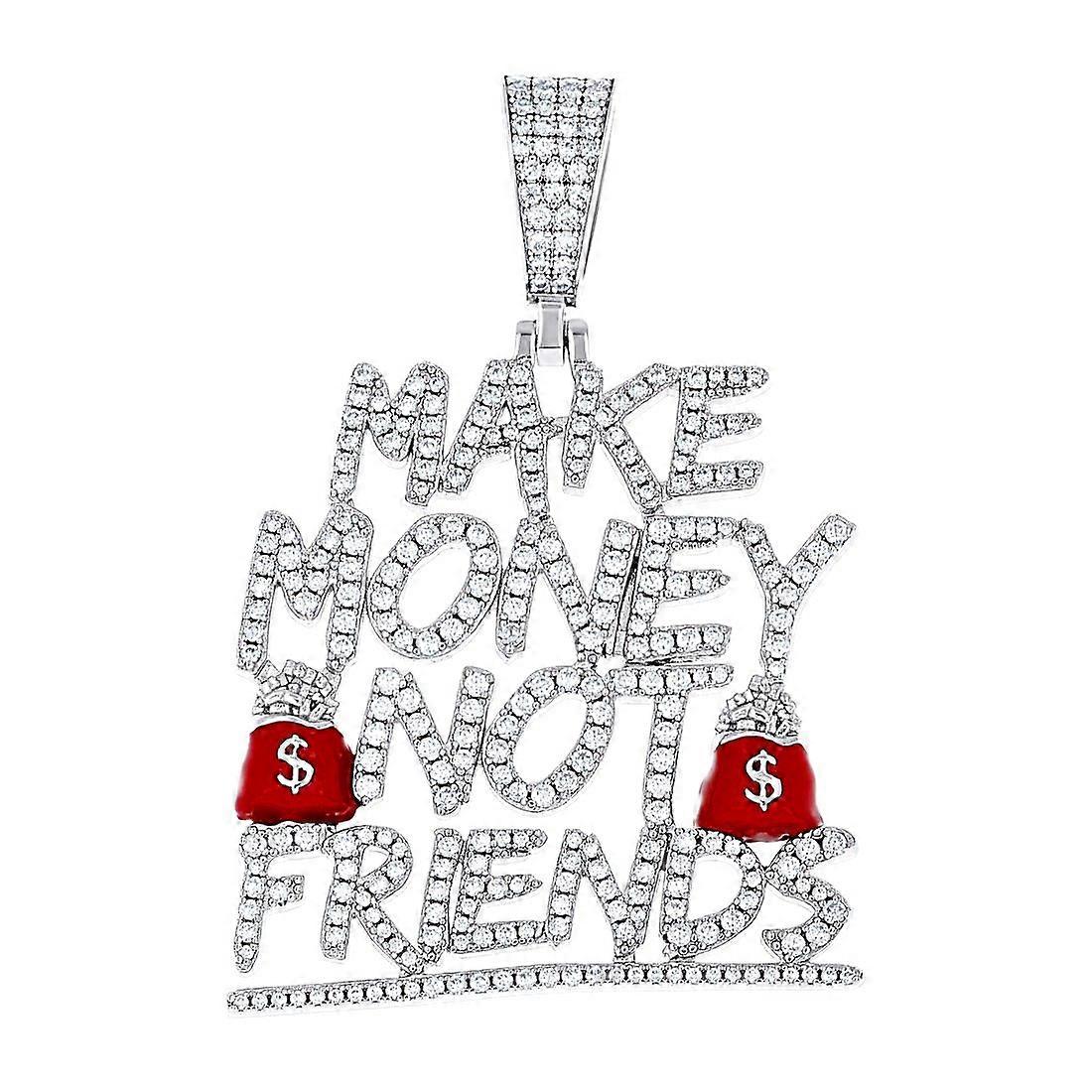 925 Sterling Silver Unisex Moissanite Enameled Make Money Not Friends Talking Fashion Pendant - Measures 55.3x37.1mm Wide - 18.7 Grams In Sterling Silver - - This Item Does Not Ship With a Chain - [ Potential Enhancement Methods: moissanite ] - Grown in a laboratory. Natural gems typically have inclusions from the crystallization process, where gases and other minerals mix during the molten stage of stone creation. Lab-created stones rely on a steady, controlled process of applying minerals, heat and pressure, and they usually have few inc - [ Care and Handling: moissanite ] - Avoid strong detergents, heat, pressure and ultrasonic cleaner or steamer. Avoid re-polishing or re-cutting of the stone. Color may fade in light or with heat. Clean with warm soapy water and a soft brush or cloth. -
