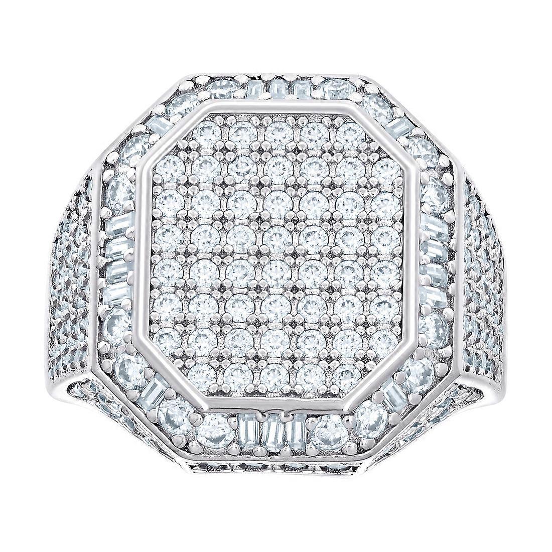 925 Sterling Silver Mens 0.50ct Baguette 2.81ct Round Moissanite Octagon Head Fashion Ring 20mm Long Ring for Men - Ring
