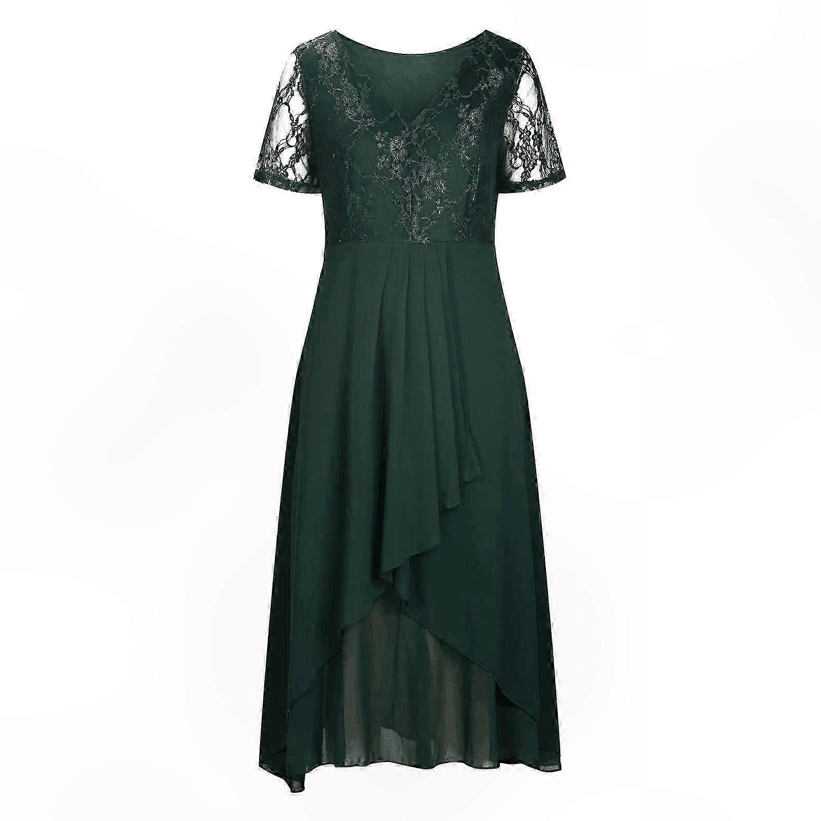 Formal Lace Chiffon Gown for Women, V-Neck Maxi Dress with Short Sleeves, Navy Blue Floral Prom and Bridesmaid Dress, XXL Size
