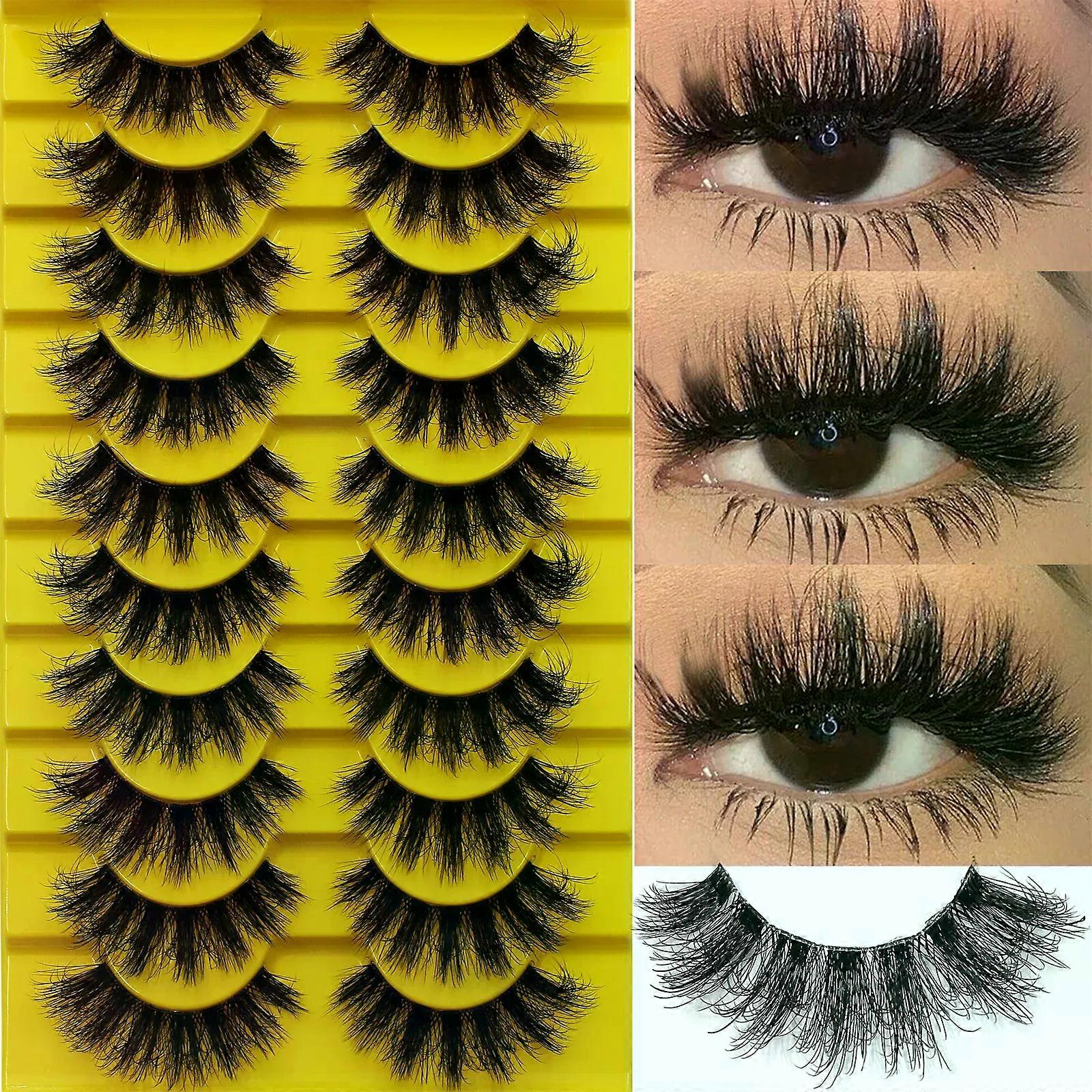 10 Pairs False Fluffy Russian Strip Lashes 3D Fake Lashes Makeup Messy False Eyelashes Fluffy Thick Lashes
