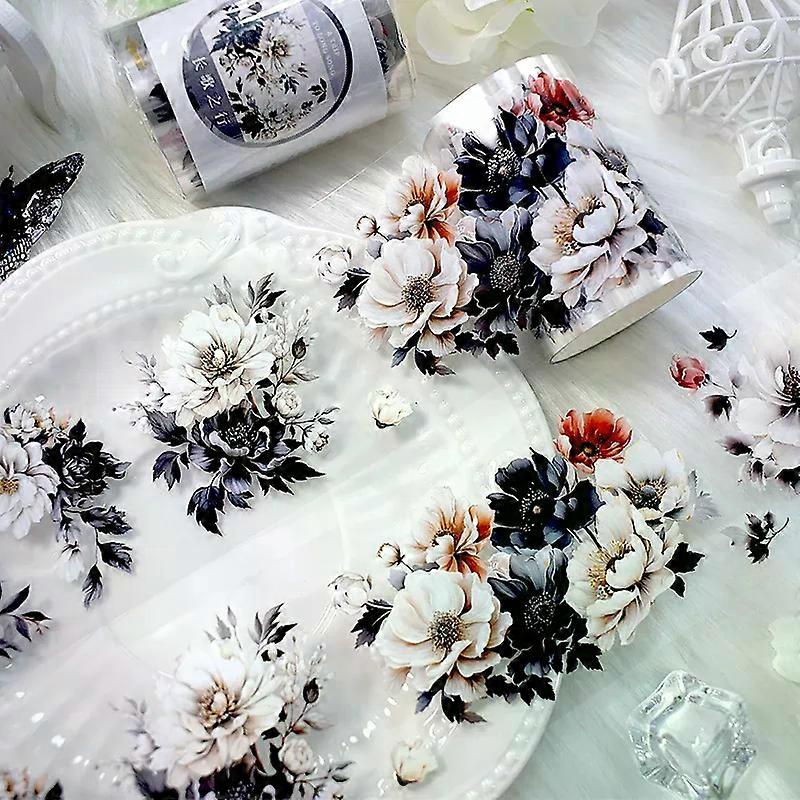 2M/Roll Black And White Flower PET Tape Ink Style Decorative Tape For Card Making Scrapbooking Planner Journal Stationery