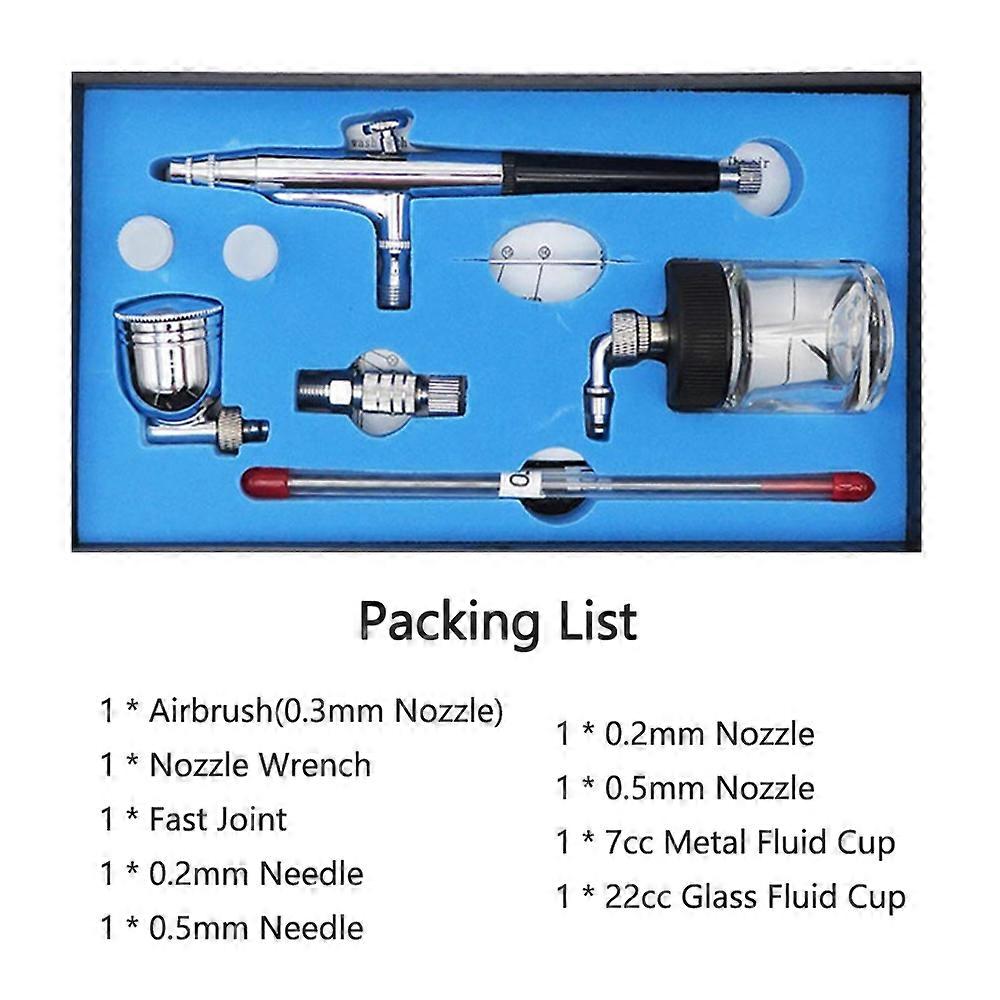 Type 4 Dual-Action Airbrush Kit 0.2/0.3/0.5mm Needles 7cc+22cc Cups
