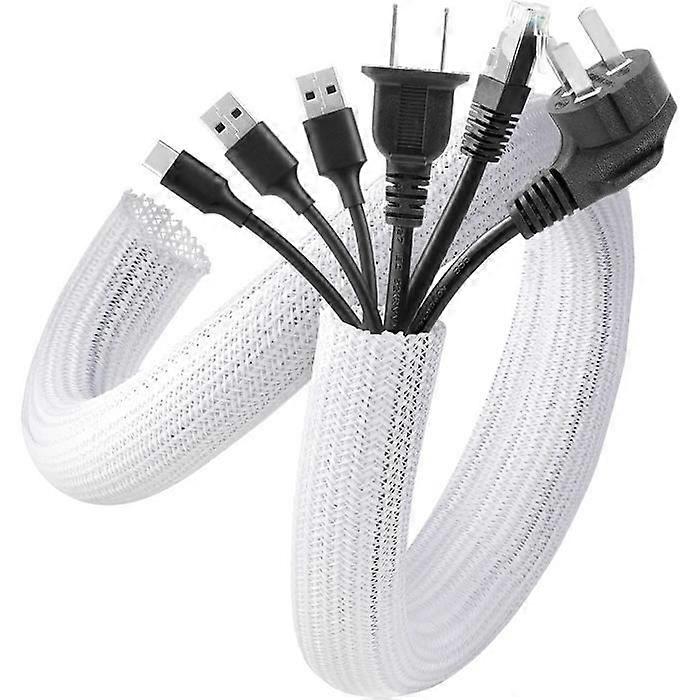 AGPTEK 2PCS Cable Sleeve 1.5 Meter, Soft PET Protective Cable Cover Diameter 19-29mm, White