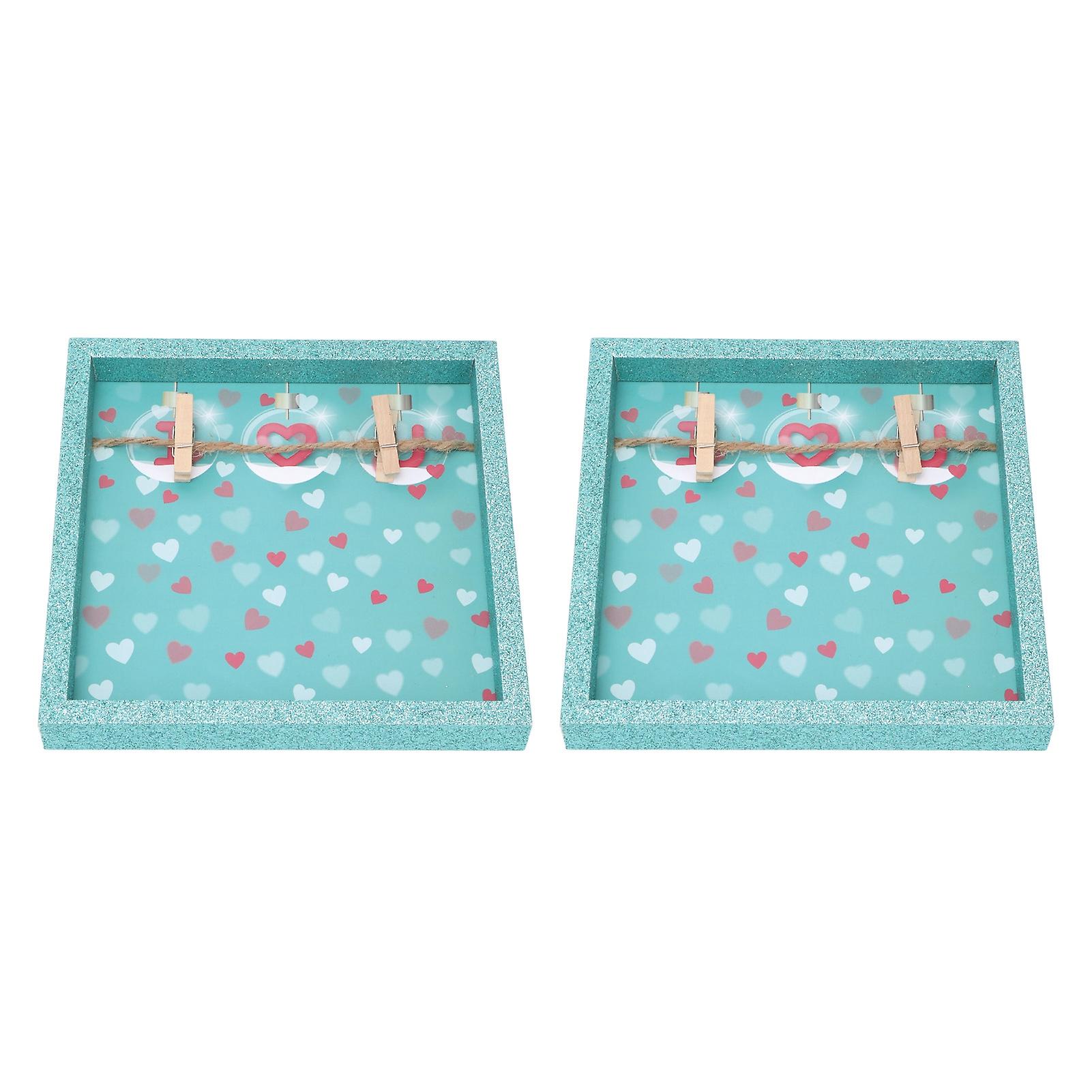 2 Pcs 17x17x2cm Green Photo Frames with Wood Clips for Wall Decor
