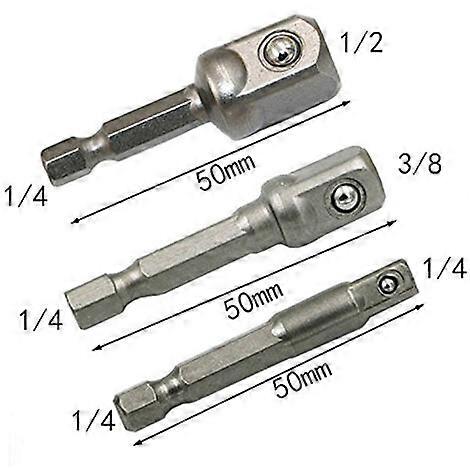 Chrome Vanadium Steel Socket Adapter, Hex Key Handle to 1/4 3/8 1/2 Extended Drill Bar Hex Bit Set, Post Socket, 3pcs