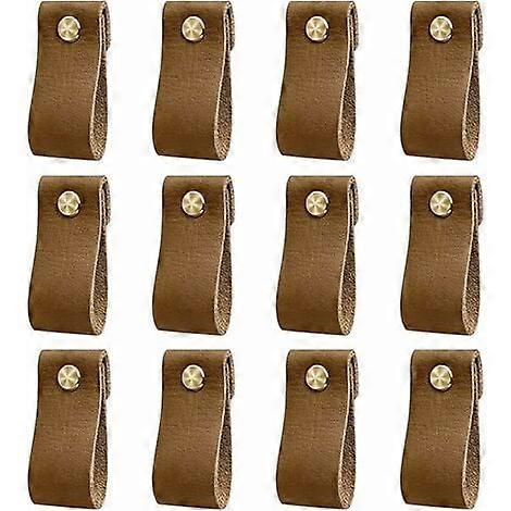<p>Product Dimensions (L x W x H): 2.5 x 2.5 x 6 cm; 119 grams</p> <p>Color: Coffee</p> <p>Handle/Lever Material(s): Wood, Metal, Glass, PU Leather, Steel</p> <p>Included Components: Set of 12 Leather Furniture Handles</p> <p>Required Battery(ies): No</p> <p>Availability of Spare Parts: Spare parts information not available</p>