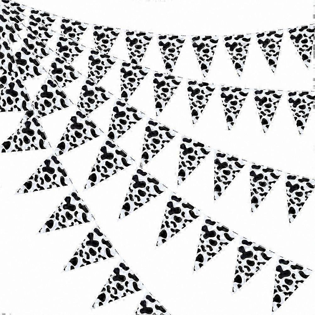 8m Farm Animal Pennant Banner for Birthday Party Decor, White and Black Cow Theme Bunting for Rustic Celebrations