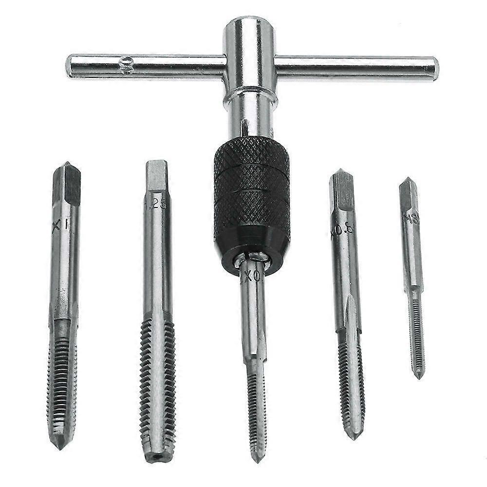 2025 Latest Model Tapping Tool Screw Taps Tool Set Hand Screw Thread Tap Wrench Handle with 6pcs Straight Flute Taps M3/M4/M5/M6