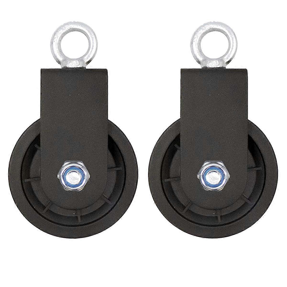 <p>【360 Degree Swivel Pulley】 Single pulley block with 90mm smooth rotating wheel, 360 degree swivel ring on the top to prevent rope/cable/wire from tangling.</p> <p>【Heavy Duty Pulley Block】 High strength U-shaped screwed bracket with heat-treated structure, sturdy, durable and reliable. Easy to use and maintain, high working efficiency.</p> <p>【High Load Capacity】 Flexible mounted pulley blocks with high load capacity, supporting up to 200kg. Suitable for ropes with a diameter up to 7mm/0.28in.</p> <p>【Wide Application】 Can be fixed on a gym machine, for DIY home gym equipment, fitness accessories, cable machine attachment. Or use with rope in indoor and outdoor applications, garage, machine loading, curtain, clothesline, pulley system, etc.</p> <p>【Dimension】 Total length: 155mm / 6.1”, width: 90mm / 3.5”; top hole diameter: 20.5mm / 0.8”. The swivel pulley block is designed to hang heavy objects to lighten the load.</p> <p>Product color: black</p> <p>Delivery quantity: 2 pieces</p>