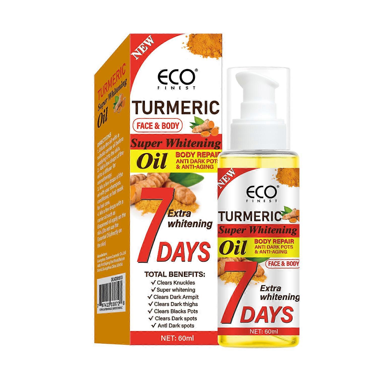Turmeric Essential Oil Massage Oil Moisturizes Skin Turmeric Essential Oil 60mlFeatures:Long term moisturizing, creating , penetrating it, enhancing transparency and hydration.It can adjust skin tone, improve dullness, reduce melanin production, and maintain transparency and fairness.It can improve elasticity, fade fine lines and wrinkles, and maintain youthfulness.Clean and dry the face before useApply an appropriate amount evenly to the face, gently massage until absorbedProduct Description:Product Name: Turmeric Essential OilNet content: 60mlIncludes: 1/2/3pcs * turmeric essential oil