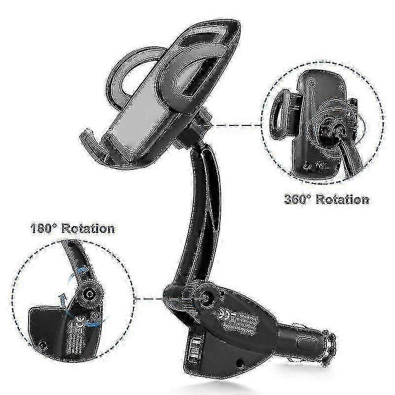 Car Mount Cigarette Lighter with Rotatable Phone Holder and Dual USB Ports for All Vehicles