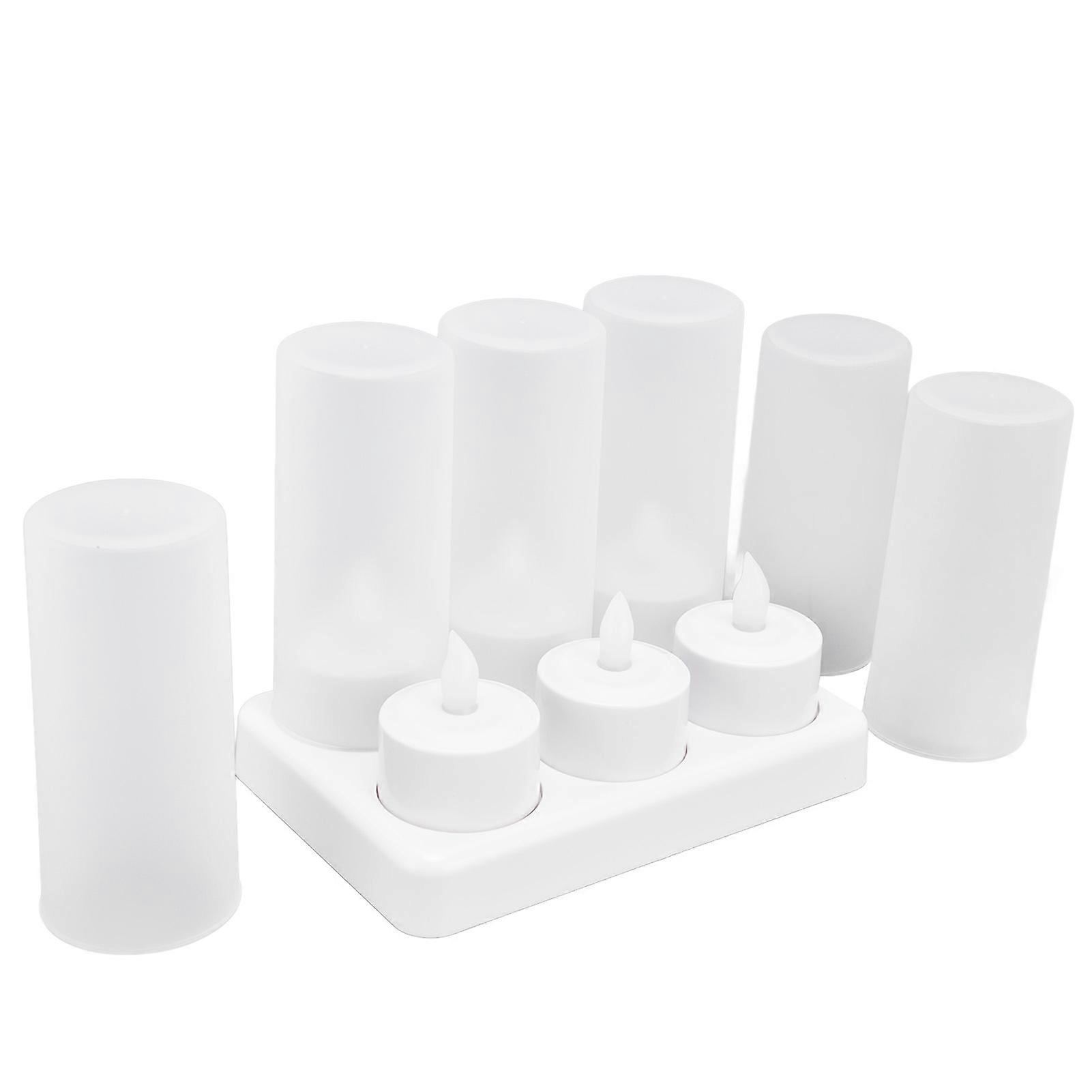Reusable LED Candle Light Flameless Tea Light Electric Fake Candle for Wedding Party Table Dining Room 100‑240VUS Plug Item Type: Rechargeable Electronic Candle Material: Plastic Color: As Pictures Shown Weight: Approx. 440g / 15.5oz Candle Lamp Size: Approx. 4x4.6cm / 1.57x1.81in Plastic Cup Size: Approx. 4.5x10cm / 1.77x3.34inCandle Lamp Battery: 3.7V 200mAh Lithium Battery(Built in) Remote Control Battery: A 150mAh CR2025 Button Battery (Built in) LED Light: Purple Light Charging Time: 4 Hours Working Time: 40 Hours