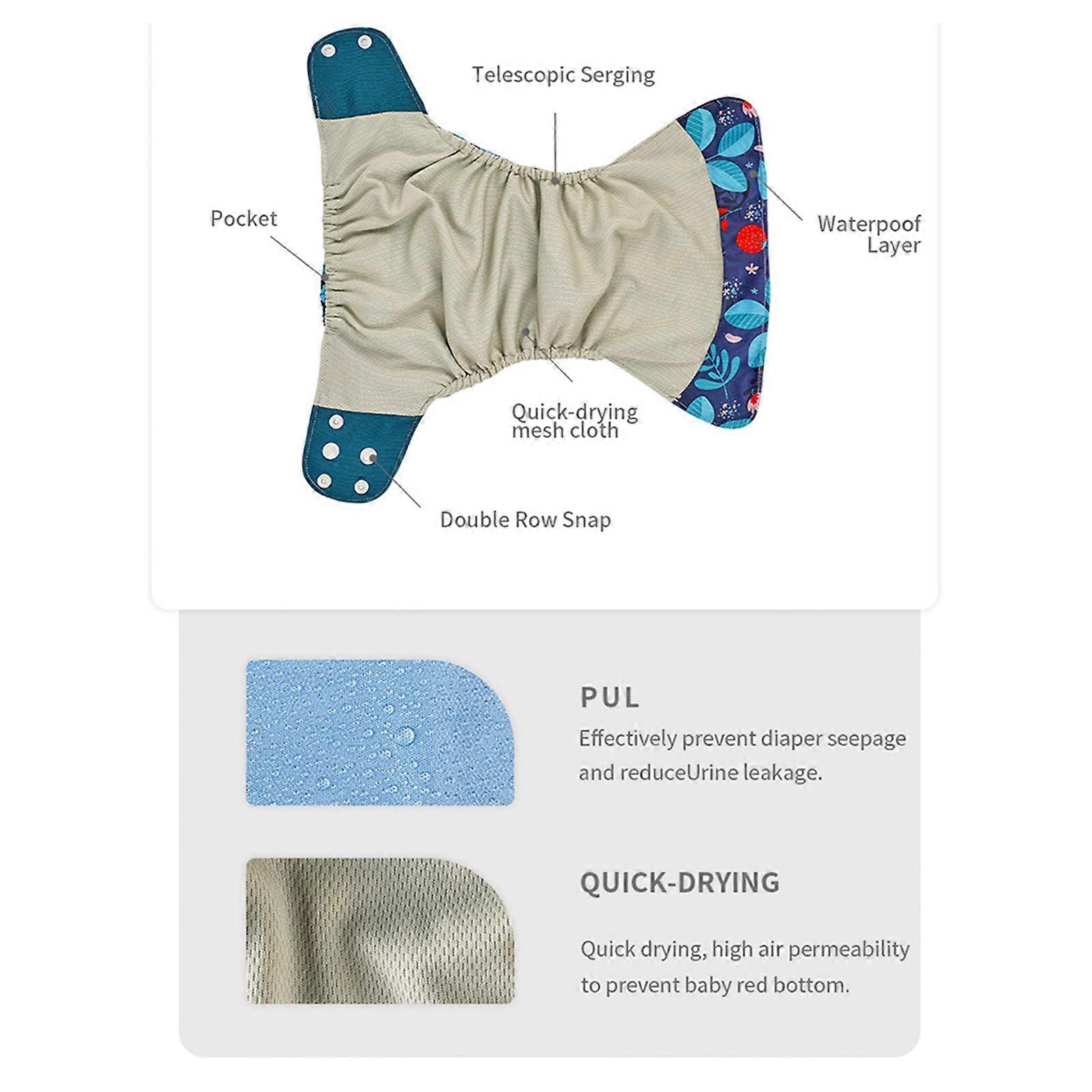 4pcs Washable Adjustable Baby Cloth Diapers Quick Dry 3-15kg
