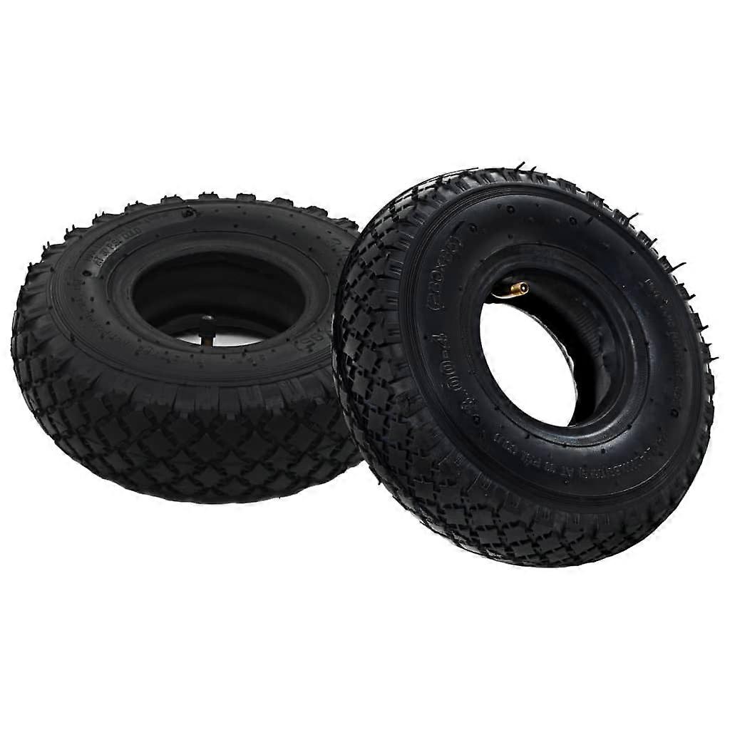 Colour: Black Material: Rubber Tyre size: 3.00-4 (260 x 85 mm) With bent metal valves Package Includes 2 tyres and 2 inner tubes Note: Not for highway use