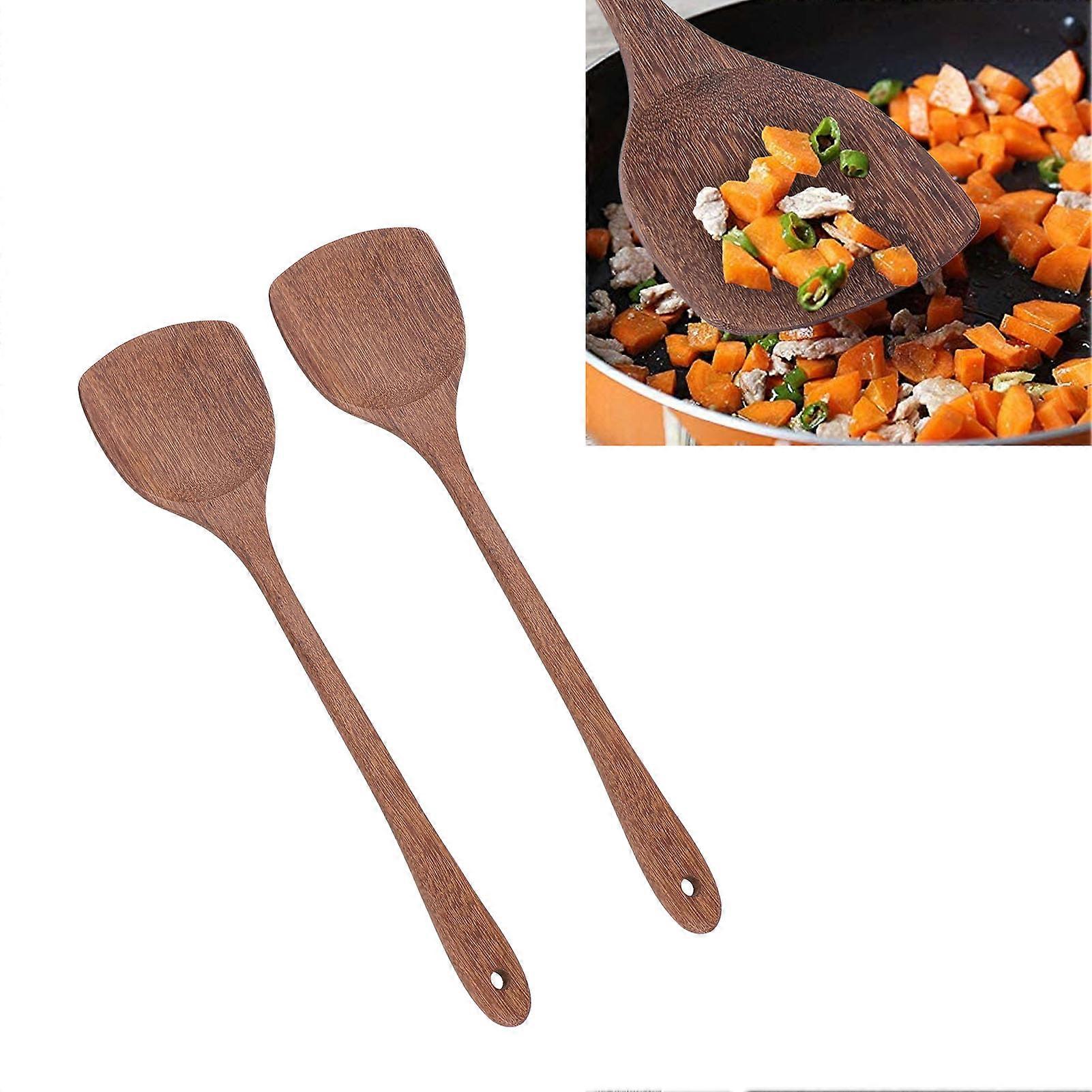 2pcs Wooden Spatula Set 38.5cm Wenge Hand Polished Kitchen Tools